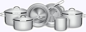 Jogo de Panelas Tramontina Solar em Aço Inox com Fundo Triplo e Tampas de Inox 6 Peças