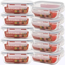 Mozcada - Kit 10 Potes de Vidro Marmita 600ml Hermético com Trava Retangular